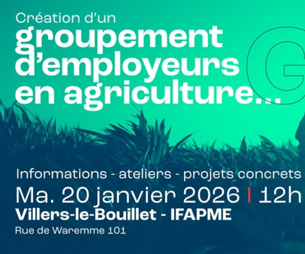 Le GAL je suis Hesbignon auquel nous nous associons, invite les agriculteurs à une séance d'informations sur: la création d'un groupement d'employeurs en agriculture..